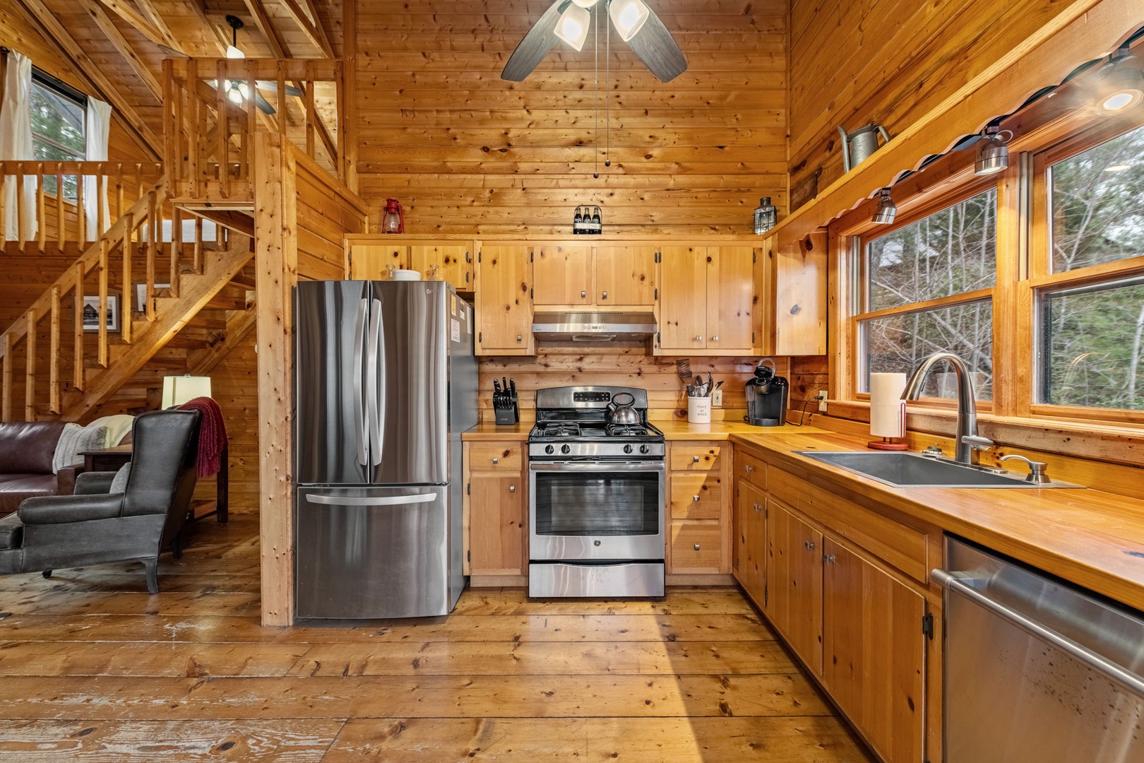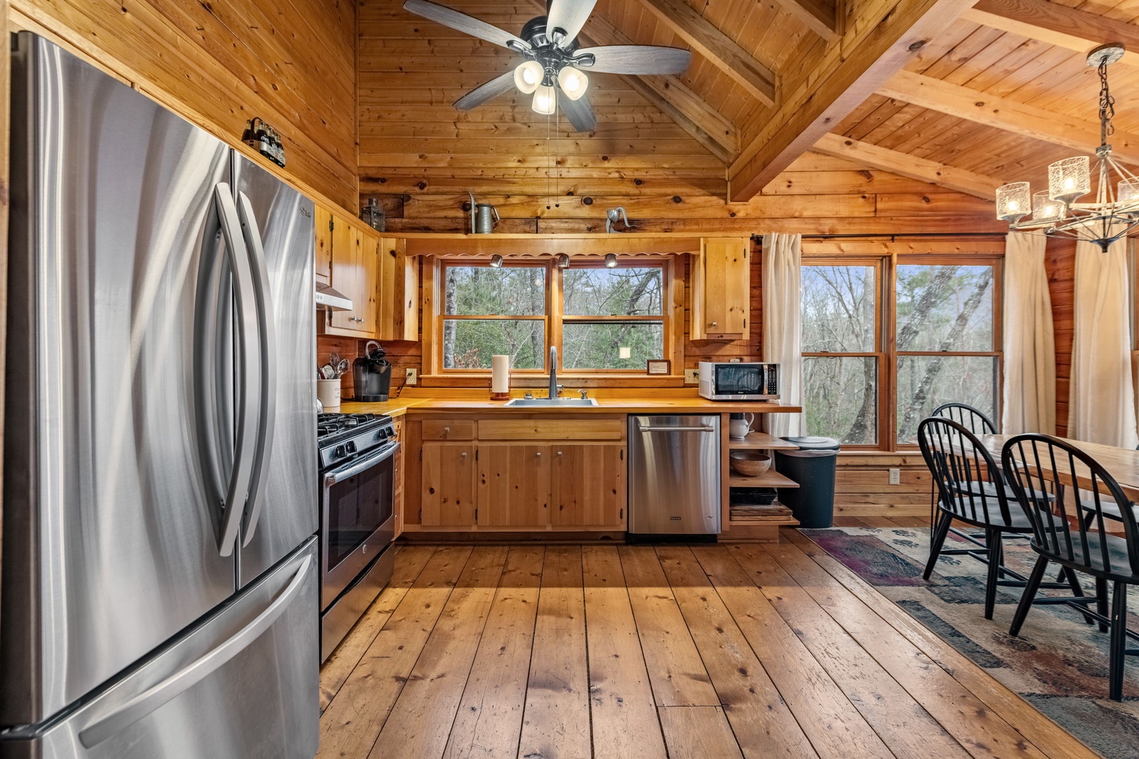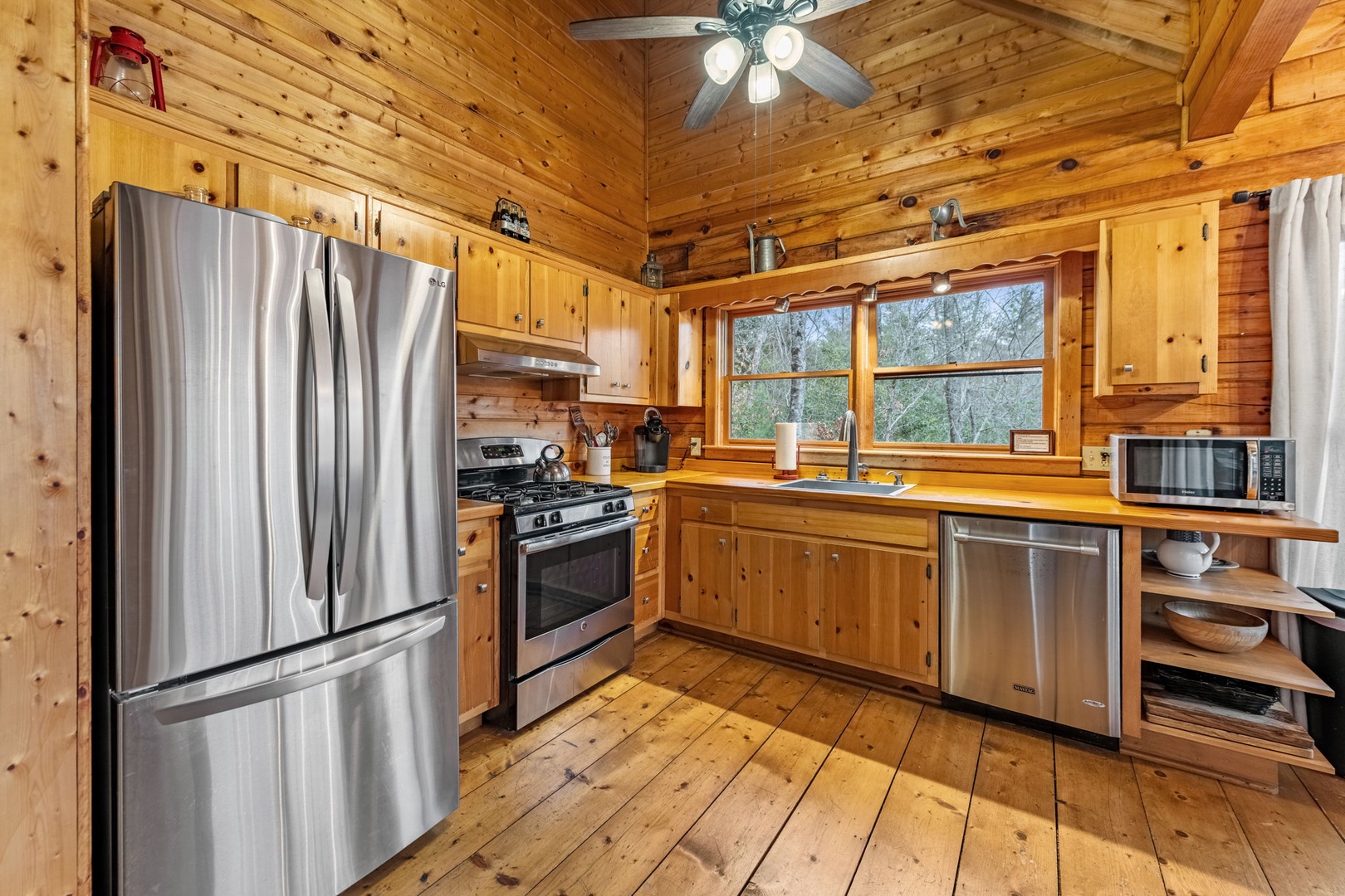 Our mountain home features three comfortable bedrooms and two bathrooms, making it perfect for couples or families. The cozy living room, complete with a welcoming fireplace, is ideal for relaxing evenings. The kitchen is fully equipped, offering everything you need to prepare delicious meals for loved ones. With paved roads leading to your private lot, you’ll enjoy both convenience and privacy in this peaceful setting.